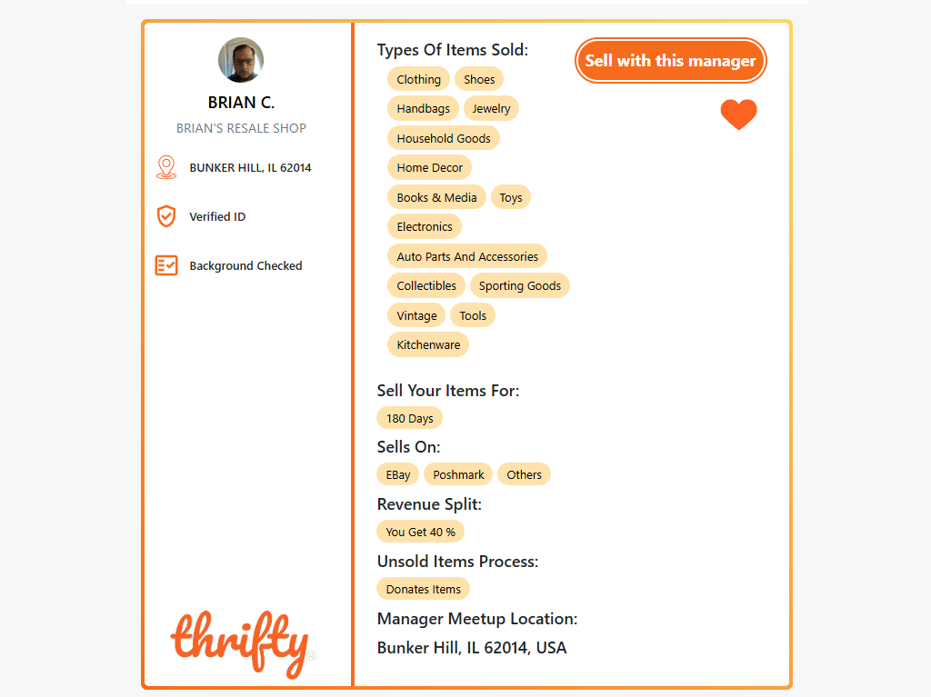 ✨ Effortless Selling: Connect with local "Thrifty Managers" who handle the entire selling process of your secondhand goods, from listing to managing sales, so you don't have to.